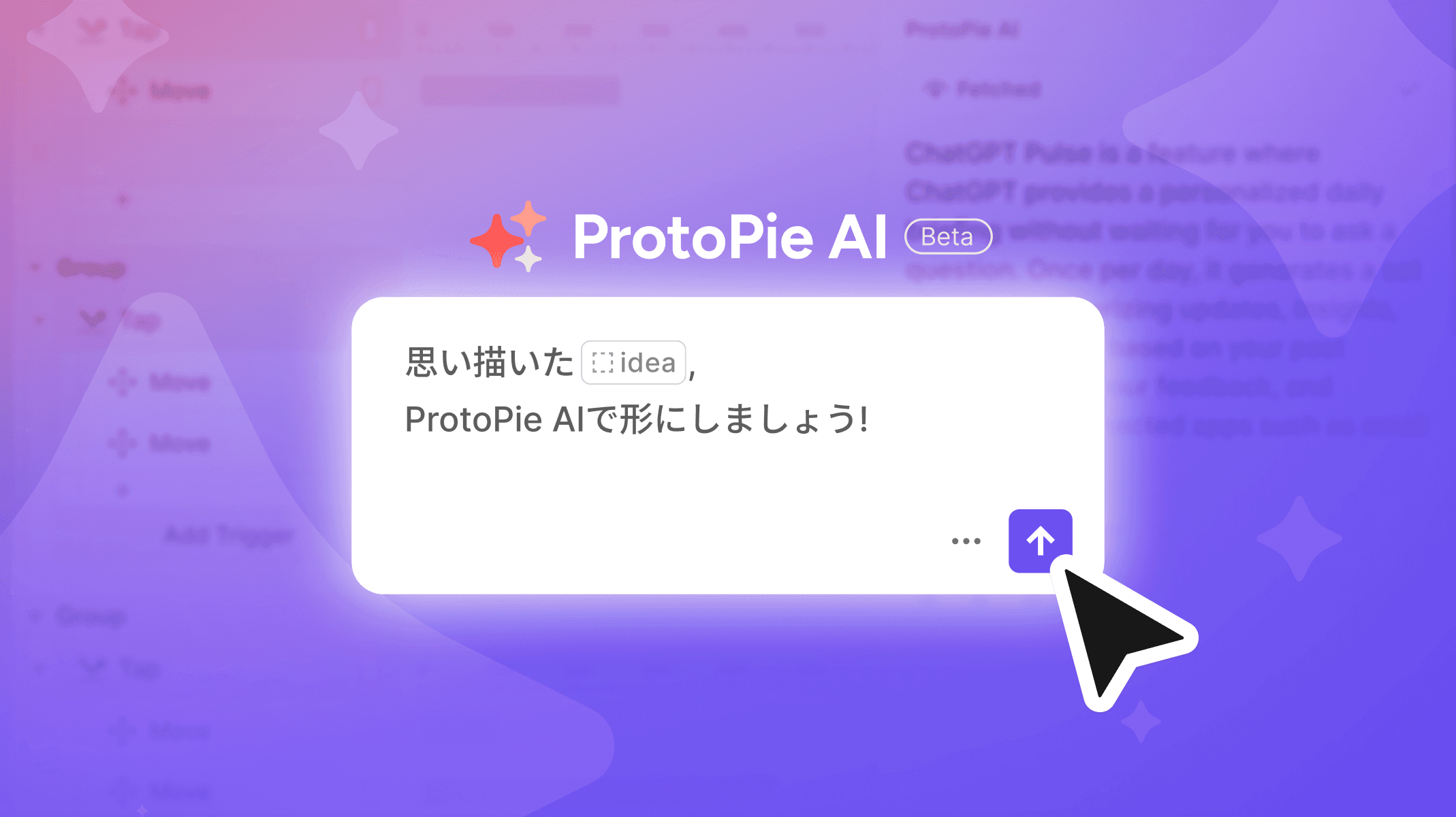ベータ版に関する補足: ProtoPie AIはオープンベータとしてリリースされ、実際の使用環境から得られるフィードバックに基づき、ユーザー体験と機能を継続的に改善してまいります。今後、数週間から数ヶ月にかけて、皆様のワークフローの中でAIがどのように活用され、進化を遂げていくのか。これからの展開にぜひご期待ください。