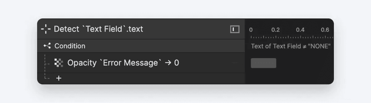 次に、テキストフィールドが内容を検出した場合にエラーメッセージが消えるように追加のインタラクションを導入します。これには「Detect」トリガーを使用します。Detectトリガーは対象オブジェクトの変更を継続的に監視します。